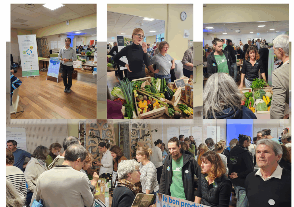 A l’heure de l’apéro, samedi soir, des producteurs sont venus nous rencontrer. Entre le maraîchage et la production de légumes, l’aquaponie, la biscuiterie, la production de kiwis ou l’apiculture, un panel représentatif de producteurs locaux étaient présents à cet événement pour expliquer leur métier et présenter leur offre. On a pu en savoir un peu plus sur l’aquaponie, le cercle vertueux des légumes et des poissons. On nous a expliqué comment un robot allège le travail des maraîchères et maraîchers afin de produire sans engrais chimiques, avec une autonomie quasi complète en eau, une belle diversité de légumes. On a pu goûter le bon miel de nos abeilles et les multiples produits issus de la ruche.